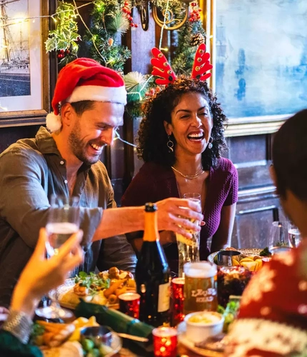We'll keep the drinks flowing, with festive cocktails, Prosecco, and cask ales all behind the bar. And designated sleigh drivers need not worry, because we've got plenty of no and low alcohol options, too.
