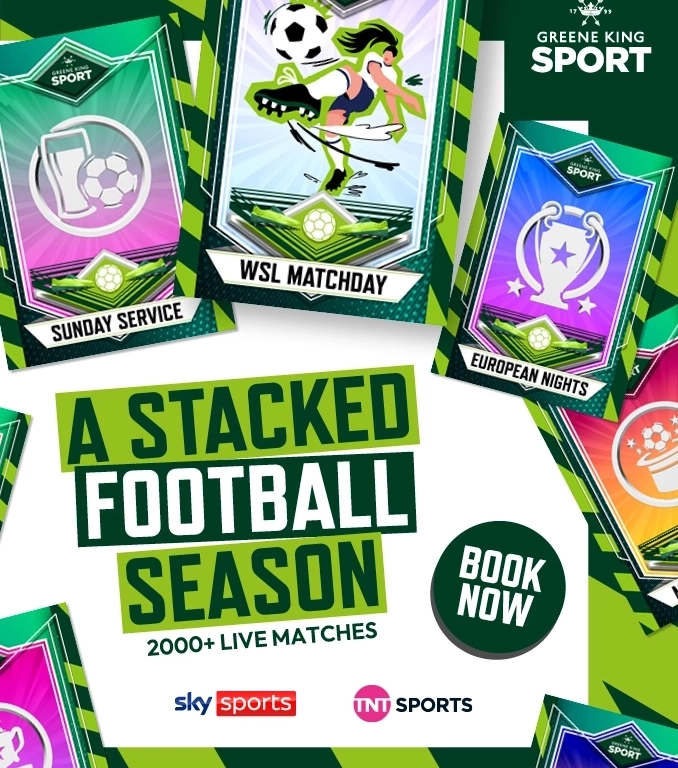 Stacked Season Collection is live on the Greene King Sport app from 14th August 2025 until 31st May 2026. Earn points and collect virtual cards each month by using your standard 10% off Greene King Sport app discount throughout the football season, before redeeming your monthly points for free drinks, money off vouchers and competition entries.