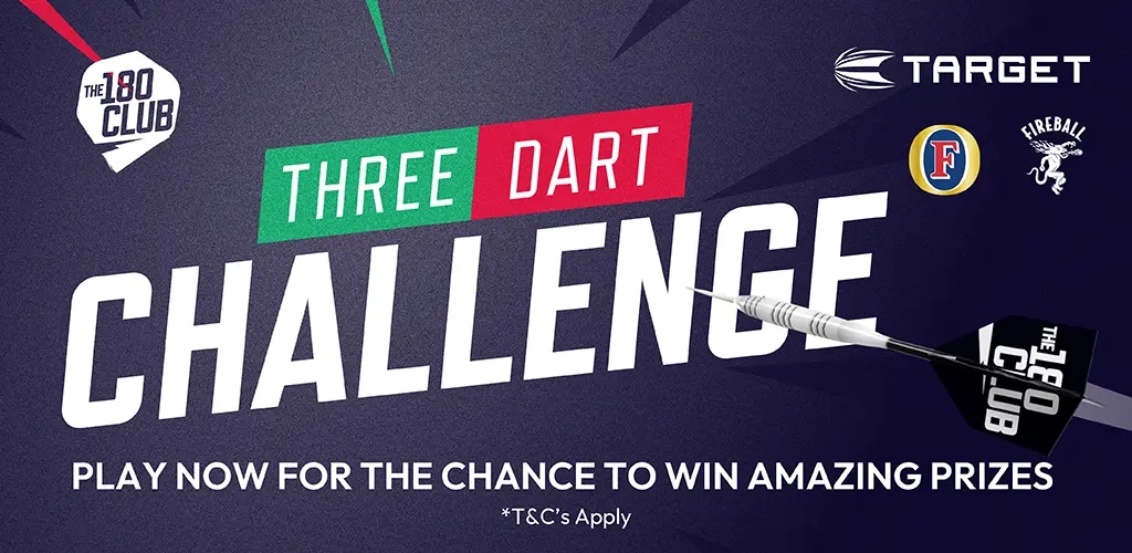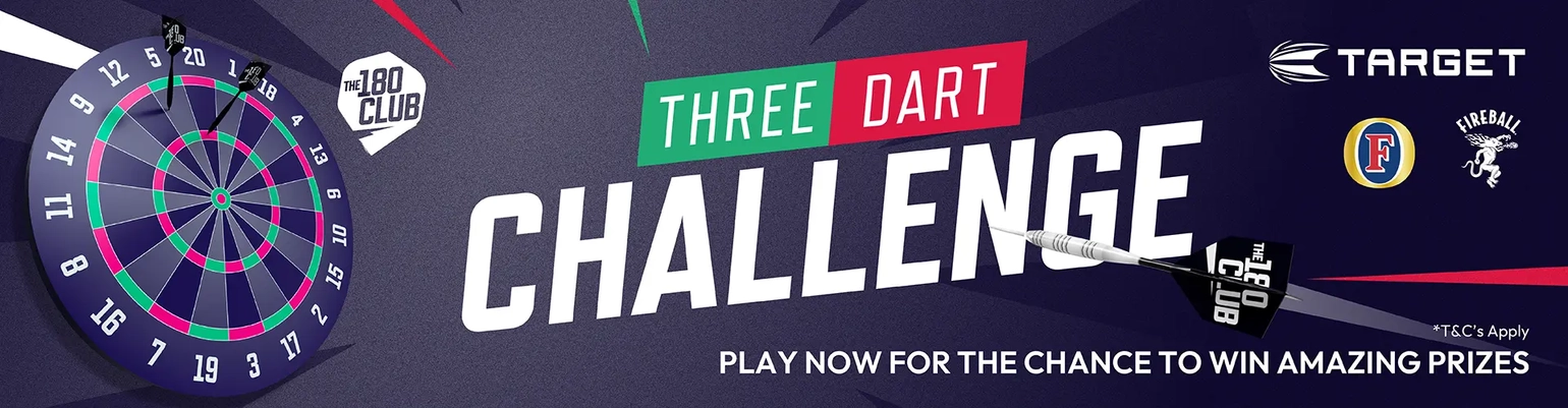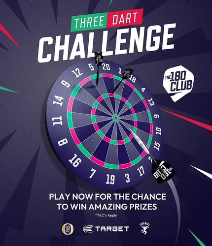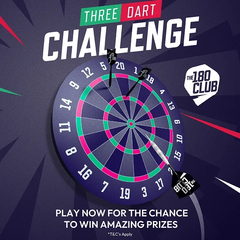 Three Dart Challenge is your first class ticket to some incredible prizes – including a darts pack featuring a Target TOR dartboard, a Vale surround, a set of Target darts and a set of K-Flex flights. With three prize draws until the last week of the tournament, you can win BIG each week when you watch darts at the pub, and there are instant wins up for grabs even if your score isn't your finest work. You'll have just three darts each week and they'll refresh every Friday.
