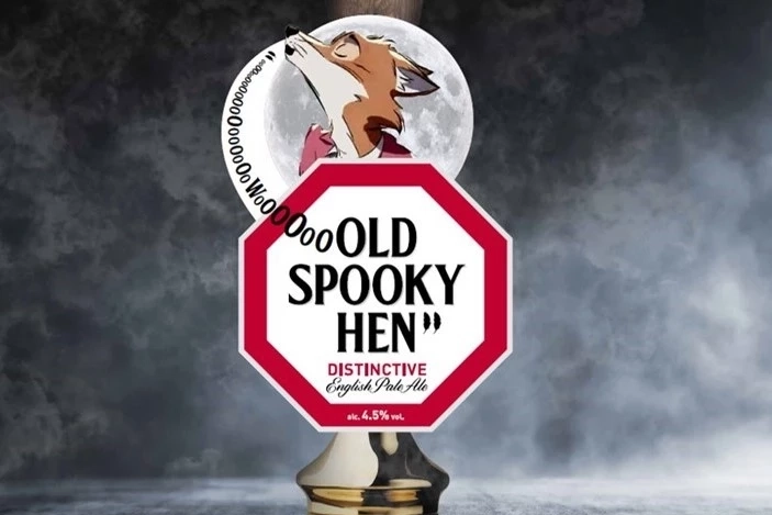 Upgrade your Old Speckled Hen tap for Halloween with our Old Spooky Hen Pump Clip and pos kit! Same great beer, spooky look for Halloween.