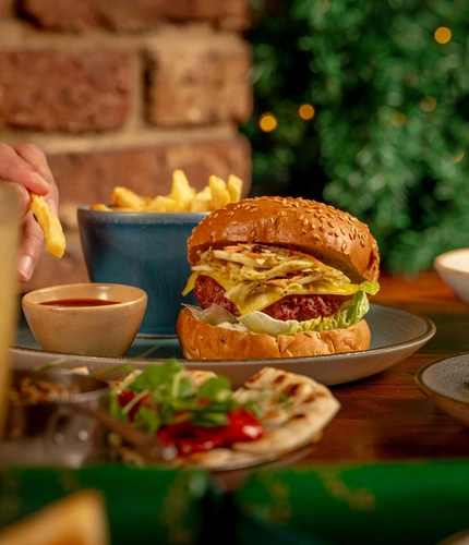 Finding a veggie burger near you has never been easier. With Greene King pubs in towns, cities and villages across the country, you’re never far from a tasty meat-free option that ticks all the boxes.Drop by for lunch, dinner or something in between – and don’t forget to check out our latest food offers. If you’re searching for the best veggie burger near you, along with a whole range of tasty pub classics for the crew, we’ve got your next meal sorted.