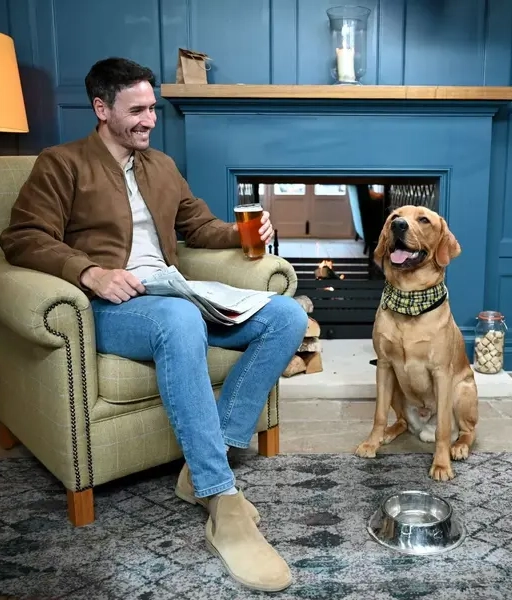 Think: lazing in the sun, surrounded by wildlife with a pint in hand. Our outdoor spaces and beer gardens are a dog’s favourite place to be, even if it’s raining. Let them soak up the rays as they cool off with a bowl of water while you enjoy the best thing the UK has to offer: a beer garden. Enjoy drinks with friends or tuck into a hearty, well-deserved meal while your pooch chills out by your side.