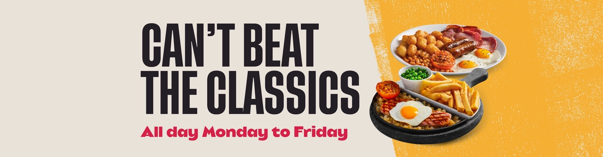 Don't fancy doing the washing up after a busy day? We hear you. All day Monday to Friday, we're serving up not one but two of our best-selling pub classics for one great value price.