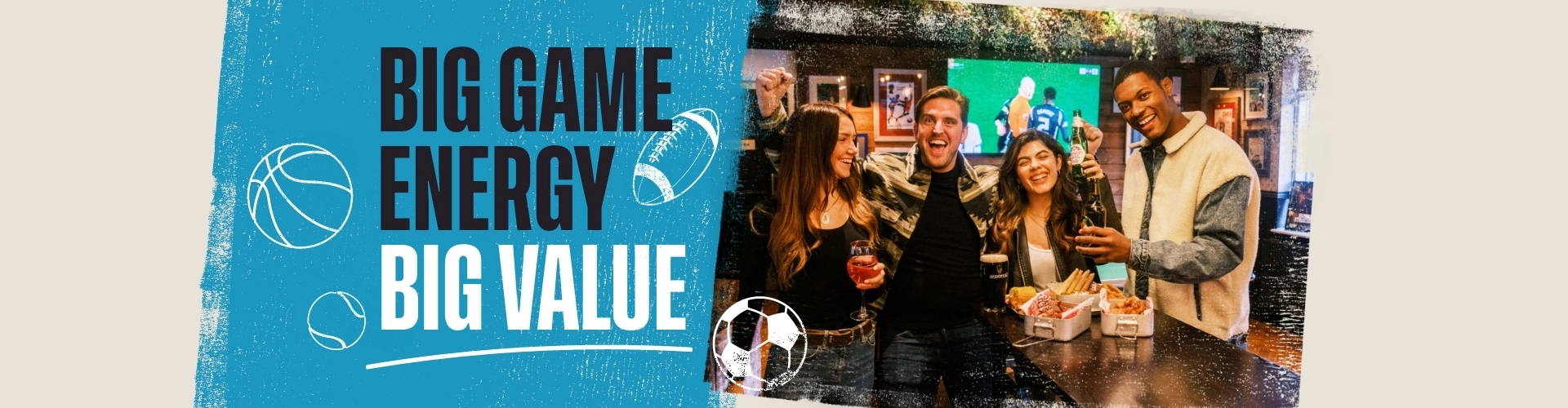 Ready for a good time? So are we! Pop a postcode, town or city into the search box below to find your nearest sports pub, book your table and see what's on this week. We'll sort the drinks, you sort the team sheet.