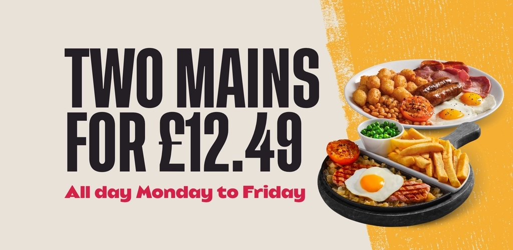 Don't fancy doing the washing up after a busy day? We hear you. All day Monday to Friday, we're serving up not one but two of our best-selling pub classics for just £12.49.