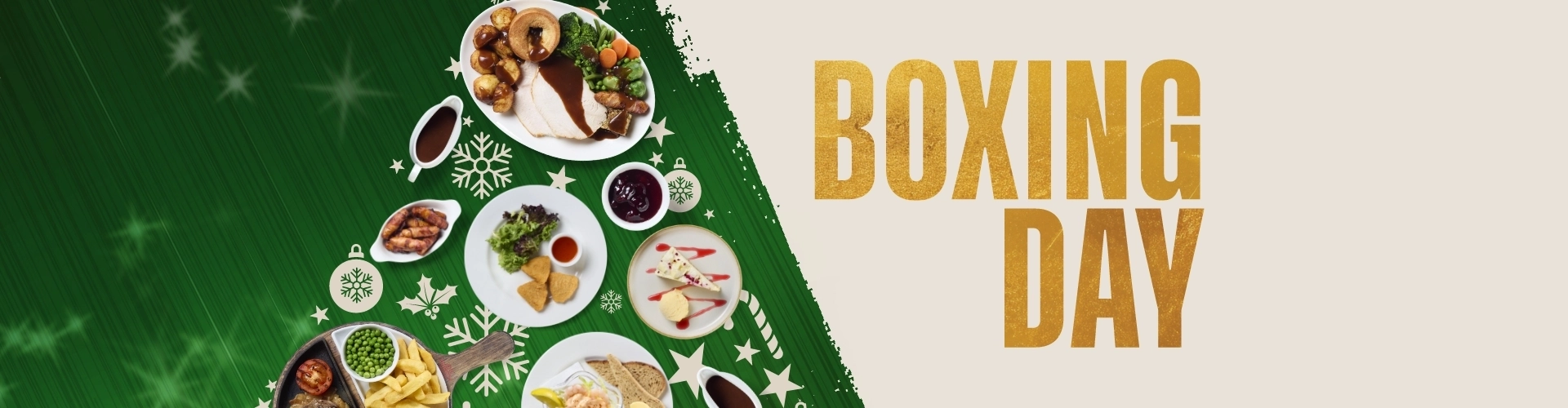 Boxing Day at ours beats all other Boxing Days, with us on cooking duty, sport on our Sky Sports and TNT Sports screens and you on drinking and eating duty. It's the Christmas present you never knew you needed. This Boxing Day, treat yourself to less washing up and a lot more holly jolly, right here at Gosling Bridge Inn.