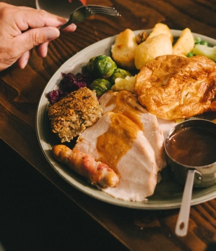 Well, why not? We’re pulling out all the stops this year – big roasts, bigger puddings and plenty of seasonal cheer. The hunt for pubs doing Christmas dinner near you is over. At the Hoy & Helmet, we’ll handle the cooking (and the washing up), while you sit back and enjoy the best part – spending time with your loved ones.
