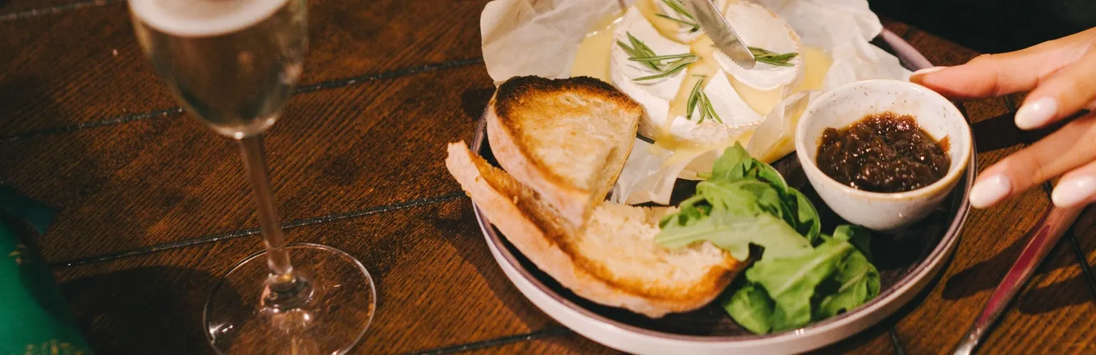 Rosemary studded baked mini camembert with caramelised red onion chutney and served with toasted ciabatta (559 kcal)FESTIVE CHICKEN STRIPS