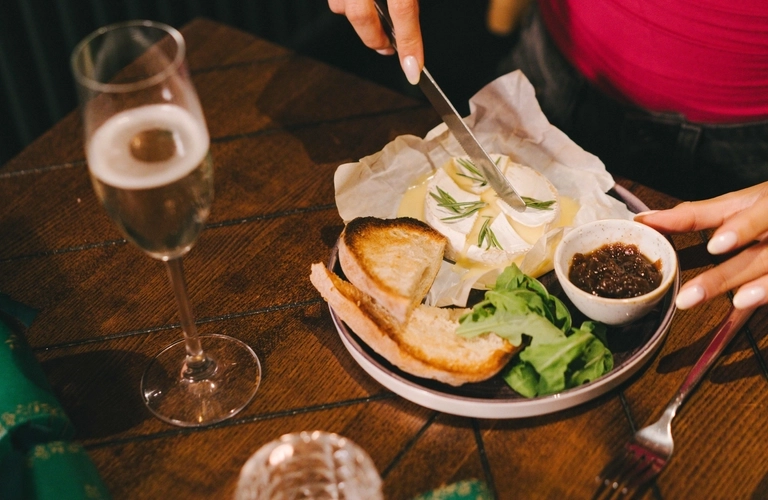 King prawns served in a lettuce cup topped with lemon mayo and garnished with a wedge of lemon (223 kcal)BAKED MINI CAMEMBERT