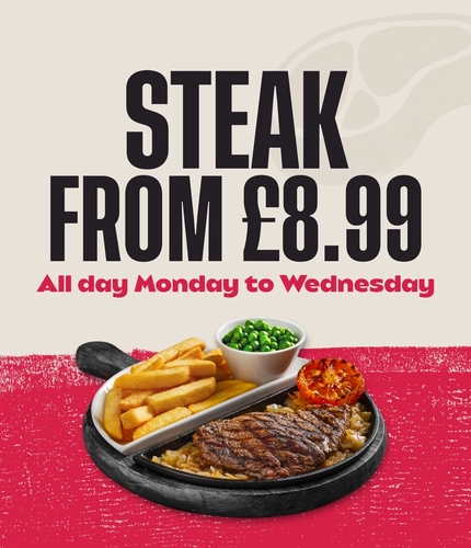 And here’s the best part: all day, Monday to Wednesday, you can savour every bite of our 8oz* Rump for just £8.49 or indulge in the melt-in-your-mouth goodness of our 8oz* Sirloin for only £10.49.