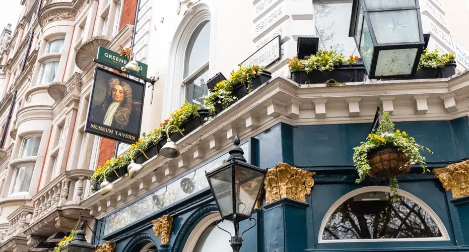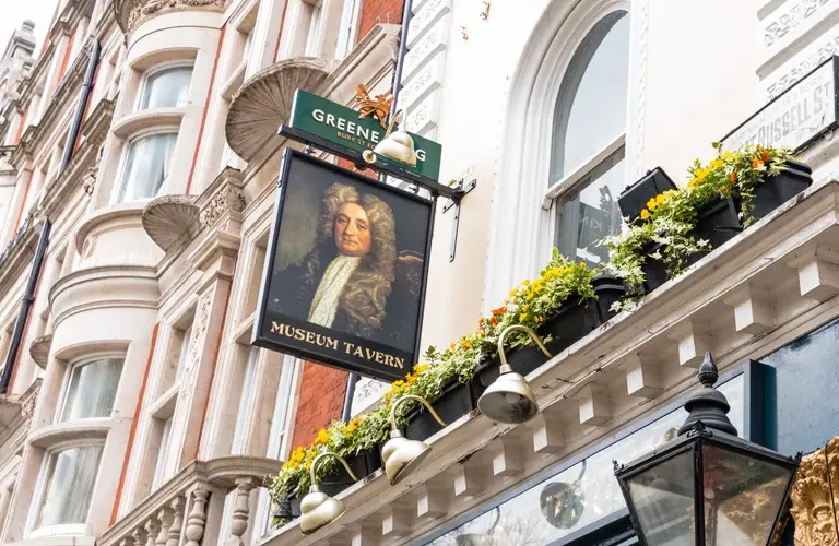 The Museum Tavern is a cosy English pub serving real ales and traditional food in a family-friendly and dog-friendly environment with free Wi-Fi.