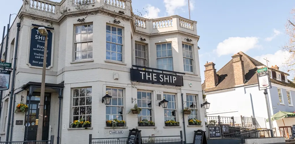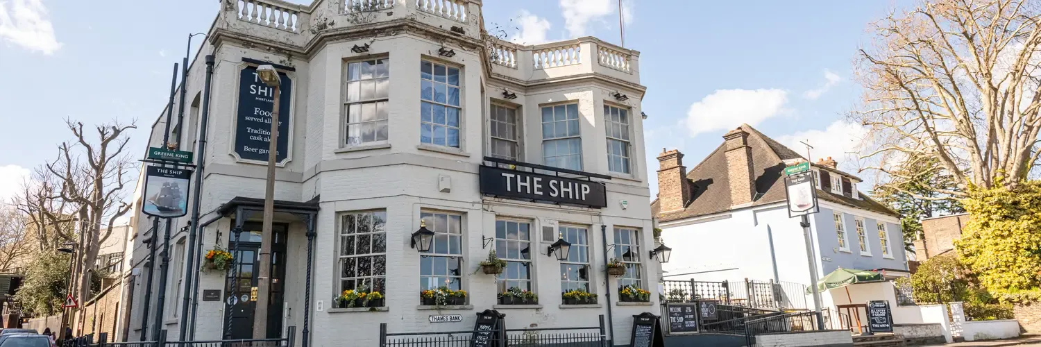 Make an enquiryThe Ship, Mortlake’s riverside picturesque pub, is favoured by locals for its prime position by the finish line of the Oxford/Cambridge Boat Race. You’ll find us located at the end of Ship Lane off the Lower Richmond Road in Mortlake, to the rear of the Budweiser Brewery. Its nautical ties are reflected in a white and navy blue exterior with a welcoming open fire and timber floor to greet your indoors or beer garden to enjoy.