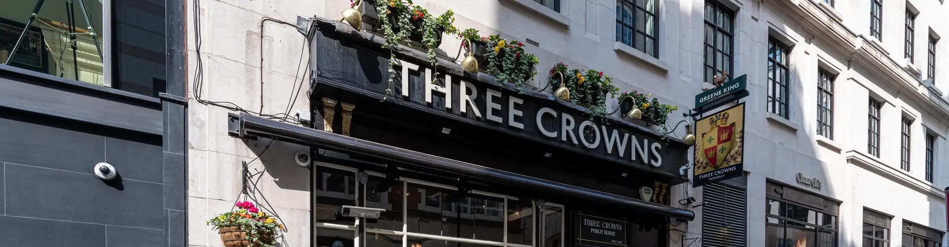 The Three Crowns in Piccadilly is perfectly placed for a bite to eat or quick stop to quench your thirst when you're exploring the city. Trafalgar Square and Whitehall are both only a short walk away. Our welcoming interior has a selection of leather seats, ba...