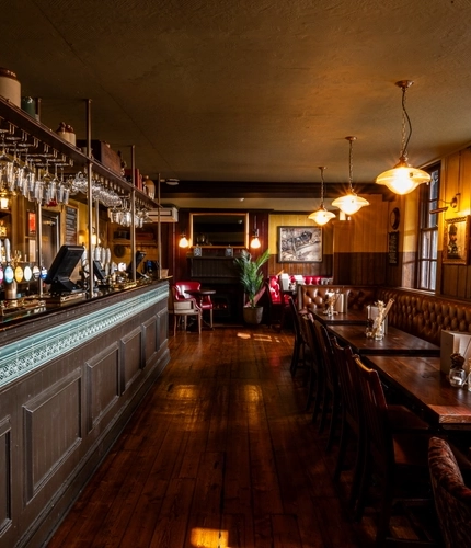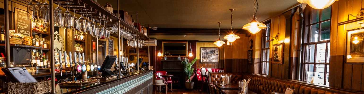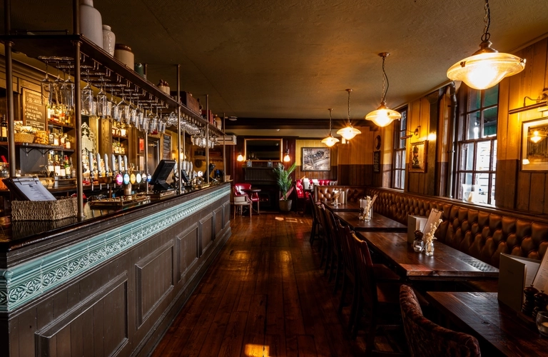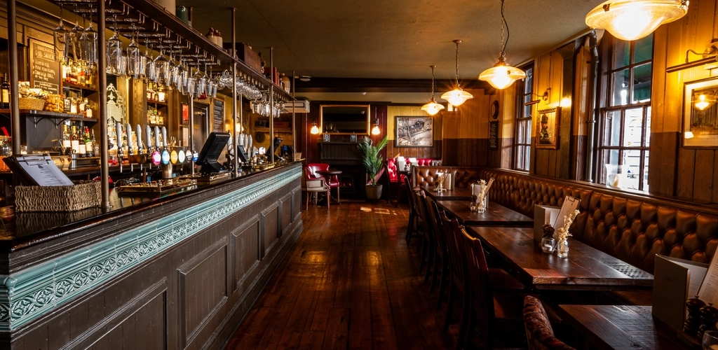 The interior bar, restaurant and seating area at the Three Tun.s