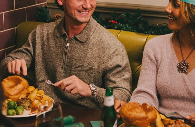 Explore our drinksWell, why not? We’re pulling out all the stops this year – big roasts, bigger puddings and plenty of seasonal cheer. The hunt for pubs doing Christmas dinner near you is over. At the Halfway Inn, we’ll handle the cooking (and the washing up), while you sit back and enjoy the best part – spending time with your loved ones.