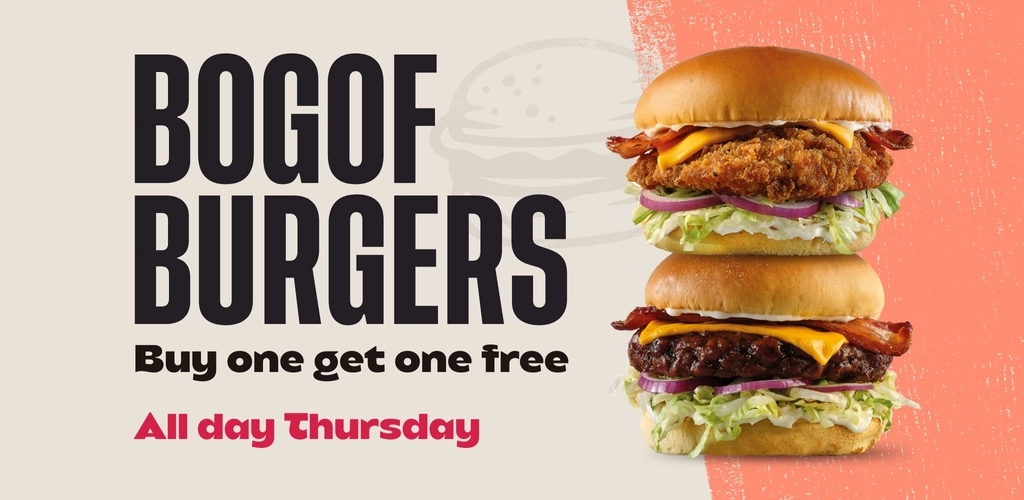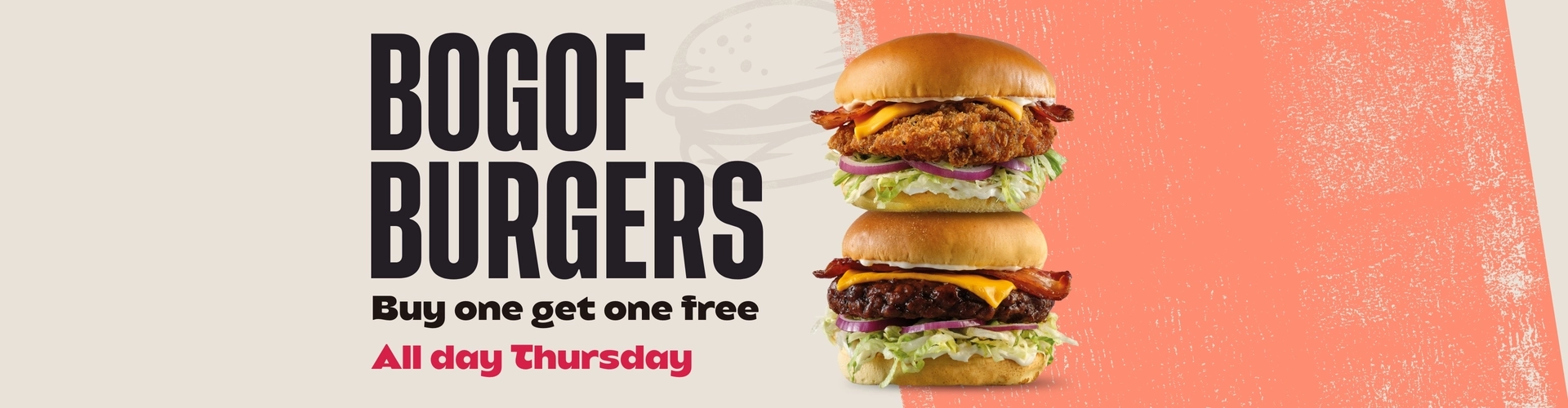 Please advise the team of any dietary requirements before ordering. Our dishes are prepared in kitchens where nuts and gluten are present as well as other allergens; we cannot guarantee that any food item is completely free from traces of allergens, due to the risk of unexpected cross contamination. We do not include ‘may contain’ information. Suitable for vegetarians. Suitable for vegans. Please note that we do not operate a dedicated vegetarian/vegan kitchen area. Our menu descriptors do not include all ingredients. Some dishes may contain alcohol which is not listed on the menu. †Fish, poultry and shellfish dishes may contain bones and/or shell. ▲Scampi may contain one or more tail per piece. *All stated weights are approximate before cooking. Metric equivalent 16oz = 1lb = 454g. ‡Sizzling skillet dishes come without fried onions when served on a plate. ^Onion rings are made from chopped and reformed onions. Full nutrition information is available on our website. Calorie counts are correct at time of print. 2 Mains for £12.49 - Available all day Monday to Friday on Can’t Beat The Classics dishes, excluding Jamaican Chicken Stew. BOGOF Burgers - Buy one get one free is available all day Thursday; on all burgers excluding Signature Burgers. Steak Deal - Available all day Monday to Wednesday; 8oz* Rump for £8.49, 8oz* Sirloin for £10.49. Sunday dishes are available all day Sunday. Alcohol for over 18s only - proof of ID may be requested. Products & offers are subject to availability at the price point advertised. Deal discounts will be applied to the cheapest qualifying items in your order. All prices are in GBP and are inclusive of VAT. Should the VAT rate change, menu pricing will be adjusted accordingly. Photography is for guidance only. We reserve the right to remove any of our food deals on all UK Bank Holidays, Christmas Eve & New Year’s Eve. Please ask a member of the team before placing your order on these days if you have any queries. ®Maltesers is a registered trademark and Mars Bar®, Trademark of Mars® Incorporated and its affiliates. Biscoff® is a registered trademark. For every Biscoff Cheesecake or Apple Pie sold, 20p plus VAT will be paid to Macmillan Cancer Support** a registered charity in England & Wales (261017), in Scotland (SC039907) and in the Isle of Man (604). Also operating in Northern Ireland. **Paid to Macmillan Cancer Support Trading Limited a wholly owned subsidiary of Macmillan Cancer Support to which it gives all of its taxable profits. Manager’s decision is final. Promoter: Greene King Brewing and Retailing Ltd, Sunrise House, Ninth Avenue, Burton upon Trent, Staffordshire, DE14 3JZ.