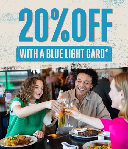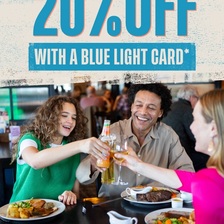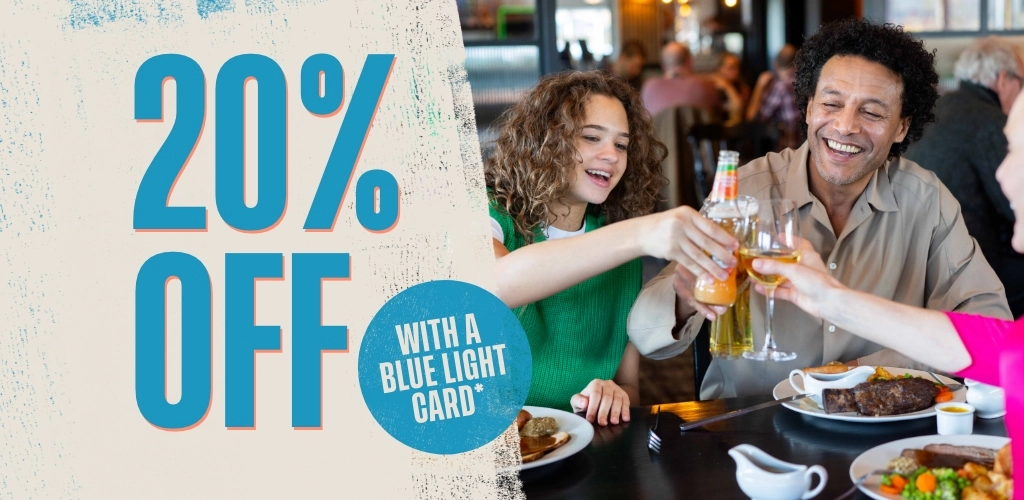 At Flaming Grill Pubs, we love a deal and we love our Blue Light Card holders. So, we’re proud to team up with the Blue Light Card discount scheme to offer you lovely, lovely people your very own discount at ours. You lot deserve a break – and a good meal!
