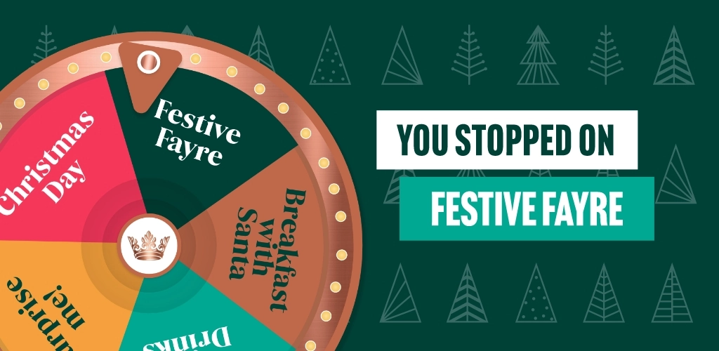 View our Christmas menusWhether you're keen on two courses or three courses, we offer great deals that can fill your plate without blowing your budget. Our Festive Fayre menu is all about Christmas classics crafted to perfection, so whet your appetite with a tempting starter, tuck into a hearty roast dinner with all the seasonal trimmings or treat yourself to an indulgent pudding that will finish your feast on a high.