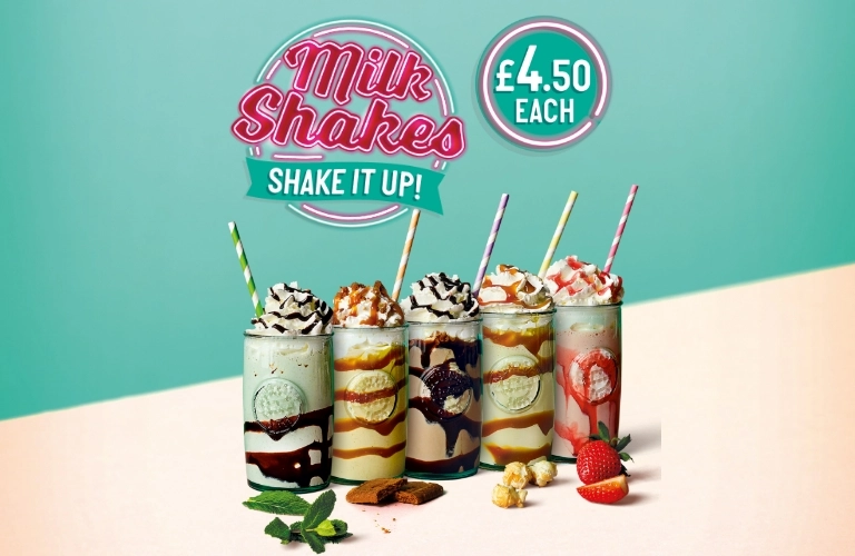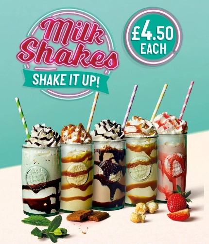 Or see what’s poppin’ with Poppin’ Popcorn, a perfect mix of vanilla flavour ice cream, blended with popcorn flavour syrup, drizzled inside and out with toffee flavour sauce, and topped with squirty cream.