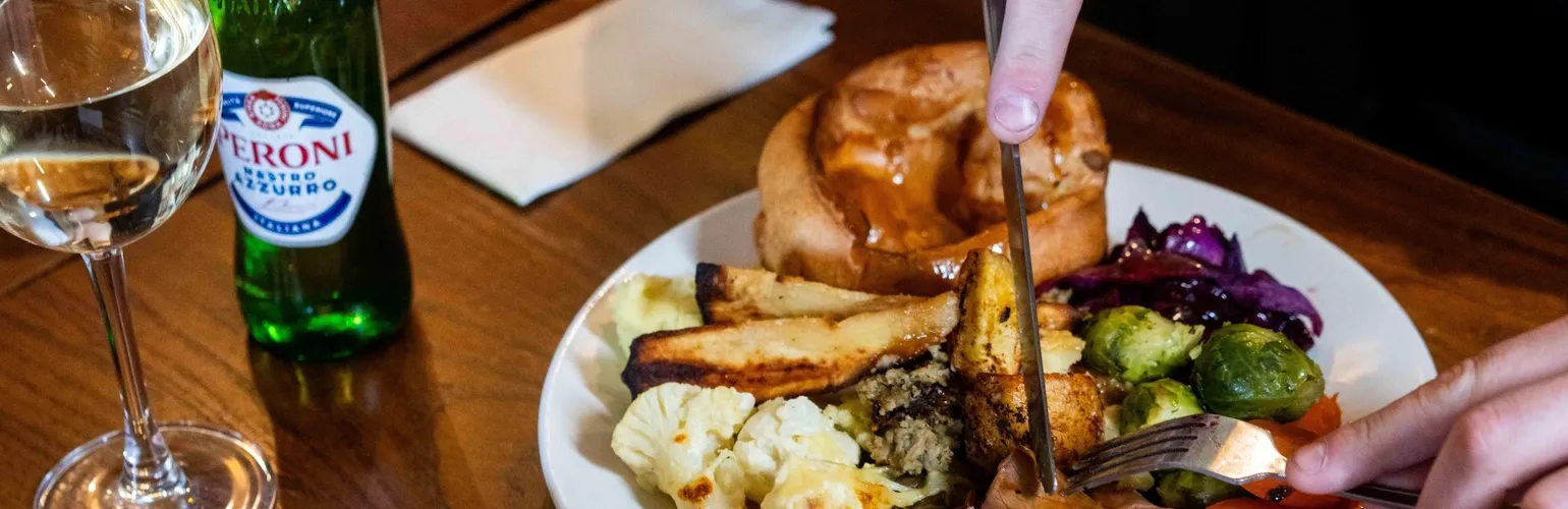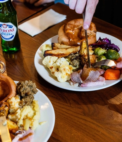Secure your team's tableJoin us for our delicious 3-meat carvery, with piles of veg, golden roasties, and pub-made Yorkies.