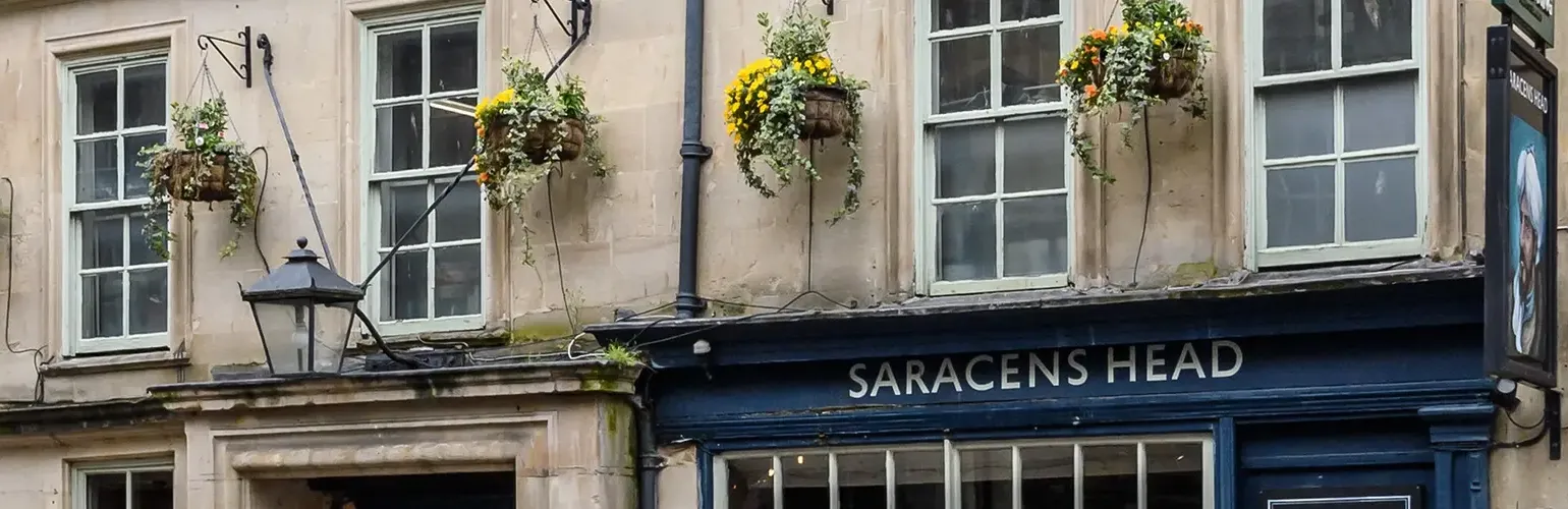 Make an enquiryBased in the stunning city of Bath, The Saracen’s Head is a charming traditional pub with a spectacular menu and a superb welcome for all who visit. Thought to be the oldest public house in the area, the pub has been popular with locals, university students and city visitors for decades, helped in part by its surroundings. Not far from the Saracen’s Head you’ll find the Jane Austen Centre, Pulteney Bridge with its fantastic views of the weir and Bath Abbey.