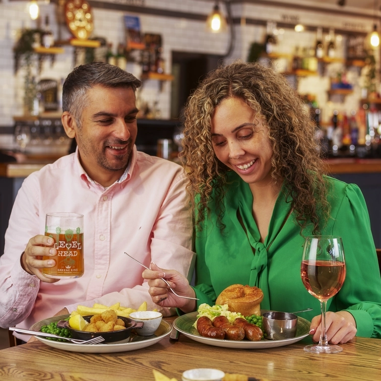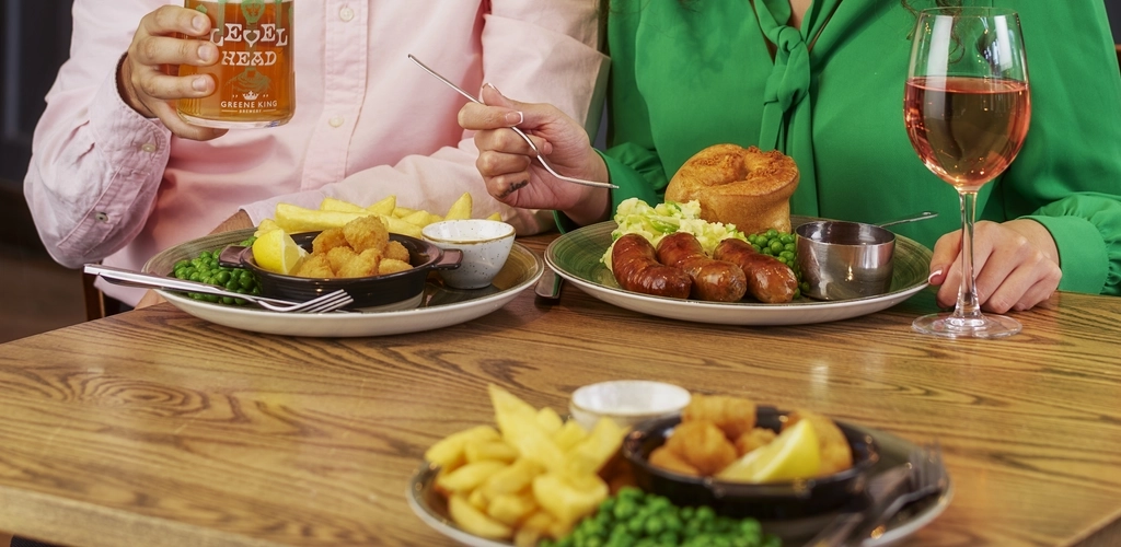 Terms & Conditions: Our menu descriptors do not include all ingredients. Full allergen information on the ingredients in the food we serve is available on request, please speak to a team member. Please advise the team of any dietary requirements before ordering. Please note that we do not operate a dedicated vegetarian/vegan kitchen area. *All stated weights are approximate before cooking. †Fish, poultry and shellfish dishes may contain bones and/or shell. Scampi may contain one or more tail per piece. Some dishes may contain alcohol which is not listed on the menu. Alcohol is for over 18s only - proof of ID may be requested. Calorie counts are correct at time of print. Offer Valid from 12th January – 27th February, Monday to Friday during kitchen opening hours. UK residents only, 18+. This offer entitles the customer to 2 main courses from the following options: (Katsu Chicken, Wholetail Scampi, Hand-battered Cod, Gammon Steak, Rainbow Grains Salad, Steak & Ale Pie, 8oz Sirloin Steak, Hunter’s Chicken. Grilled Salmon Fillet, Crispy Chicken Burger, Cheese & Bacon Beef Burger, Beyond Burger) and 2 drinks for £20. Drinks choice from the following: (1 pint of any draught beer or cider, 175ml of house Red, White or Rosé wine, English Breakfast Tea, Americano, any regular oft drink, Heineken 0.0%, Peroni Nastro Azzuro 0.0%, Lucky Saint Superior Unfiltered lager, Old Speckled Hen Low Alcohol, Guinness 0.0, Thatchers Zero, Old Mount Berries & Cherries Alcohol-Free, Kopparberg Strawberry & Lime Alcohol Free, 0.0% Sparkling Wine Freixenet). © 2023 The Coca-Cola Company. All rights reserved. COCA-COLA ORIGINAL TASTE, DIET COKE, COCA-COLA ZERO SUGAR and THE CONTOUR BOTTLE are registered trade marks of The Coca-Cola Company. All products included in the offer are subject to availability. Offer cannot be combined with any other offer, daily deal, promotion, or discount including Greene King team member and friends & family discounts. Whilst stocks last. No cash alternative. Greene King reserves the right to withdraw or amend the off er at any time. Manager’s discretion is final. Please drink responsibly. Visit www.greeneking. co.uk/enjoy-responsibly for the facts.