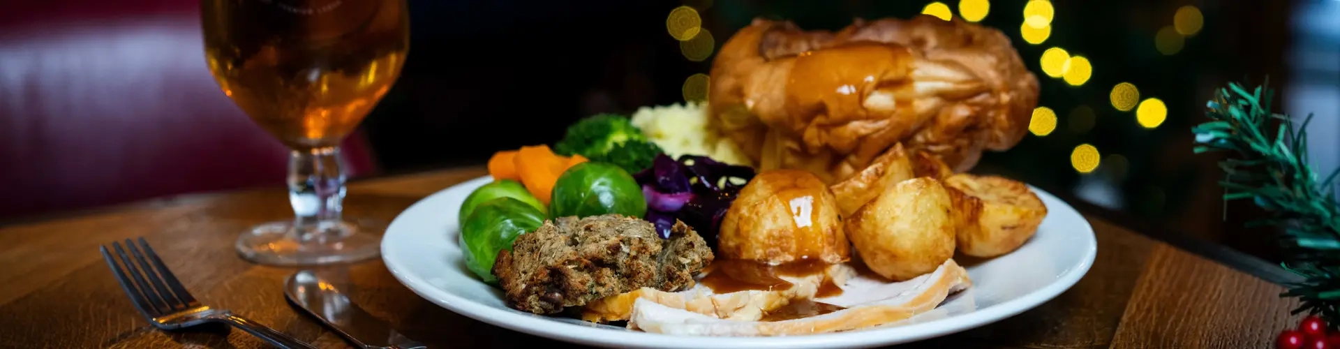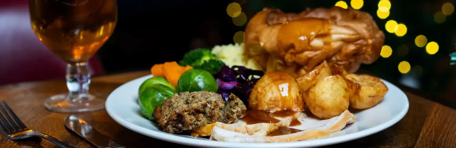 Join us for Christmas 2025Our carvery is served fresh every day and includes your choice of three 14-hour slow-cooked glazed meats. Pile your plate with a Yorkie pud made in the pub, seasonal veg and as much gravy as you like.