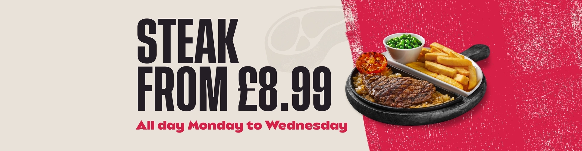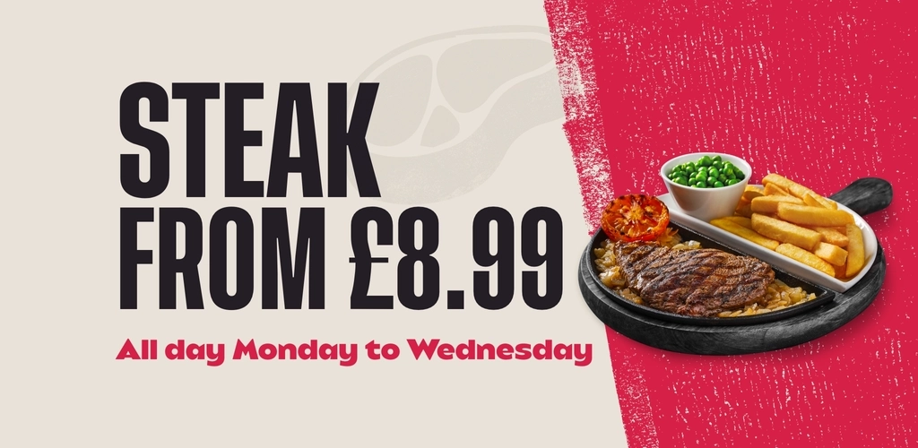 And here’s the best part: all day, Monday to Wednesday, you can savour every bite of our 8oz* Rump for just £8.99 or indulge in the melt-in-your-mouth goodness of our 8oz* Sirloin for only £10.99.