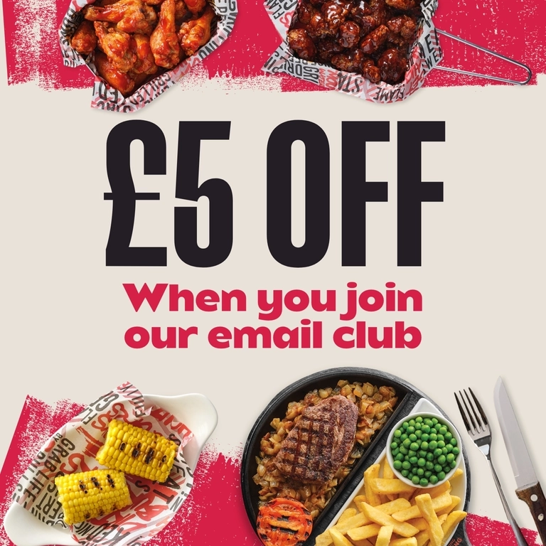 Sign up to our email club and you’ll be first to hear about our mouth-watering deals, special events and all the good stuff we’ve got cooking. Plus, did we mention the £5 off?