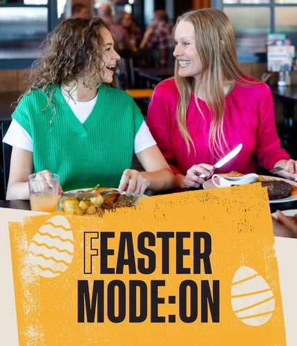 Graphic promoting 'Feaster mode on' for Easter at Flaming Grill.